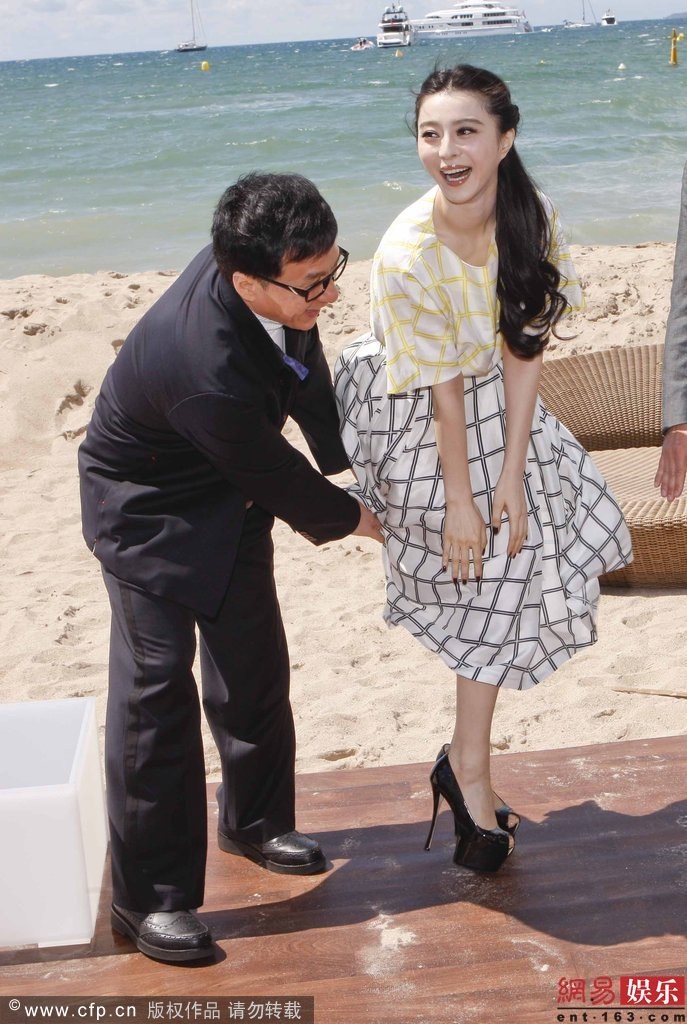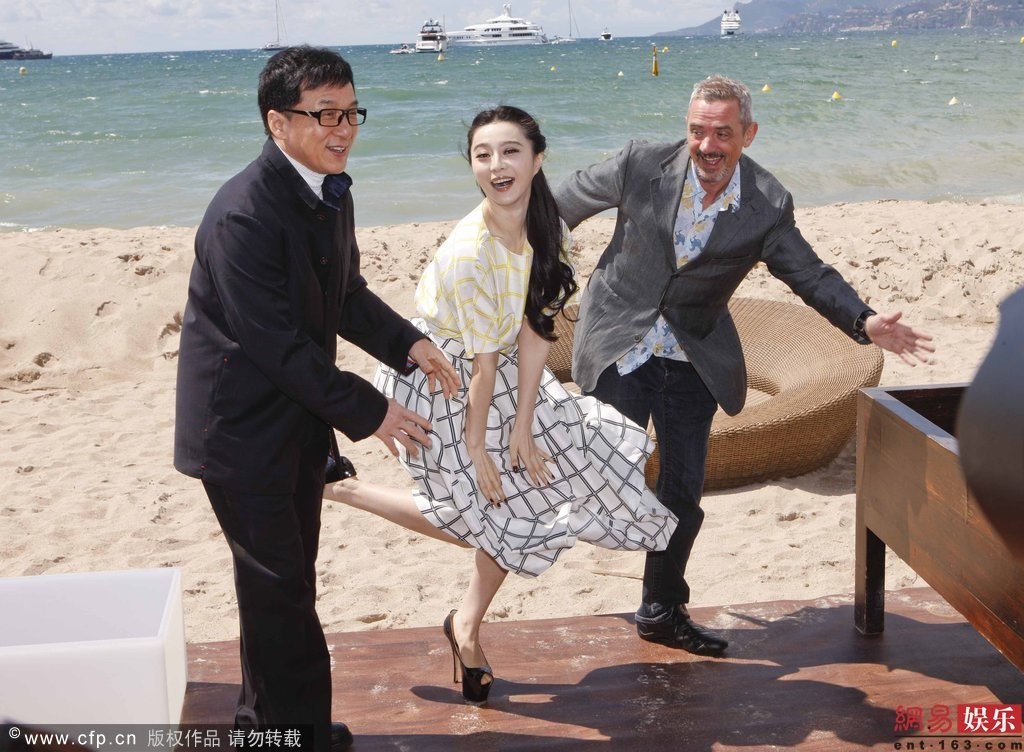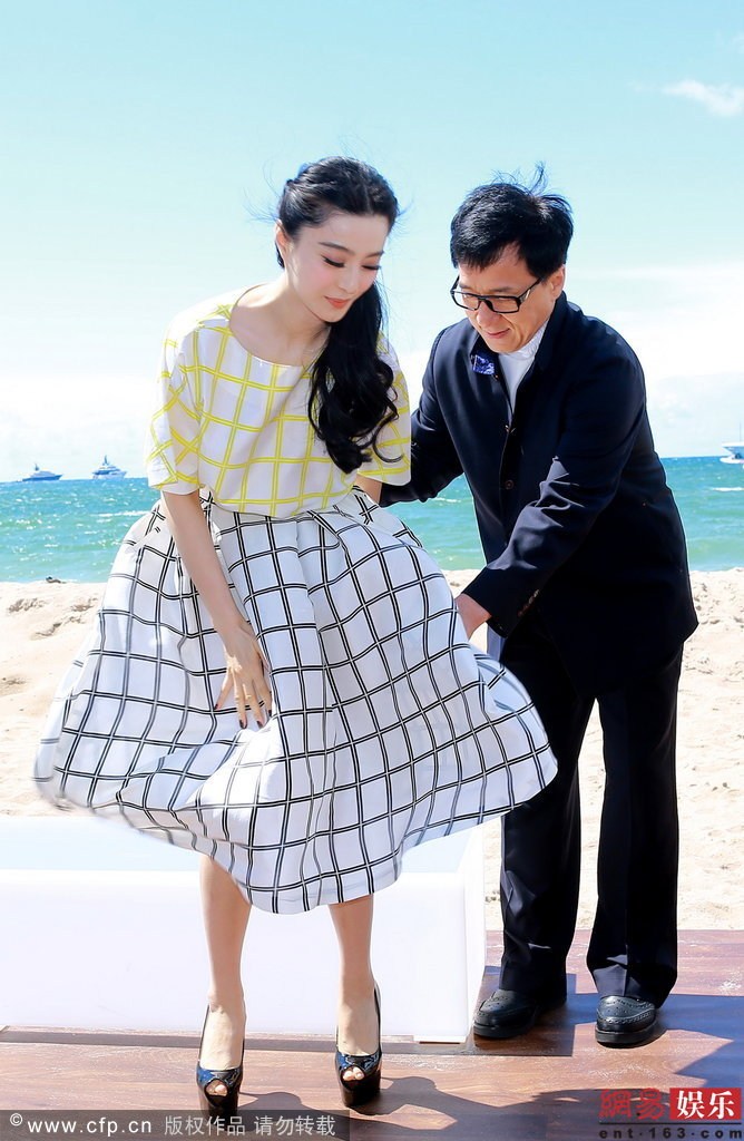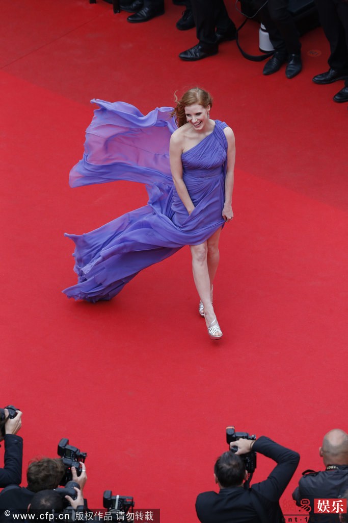 戛纳众女星裙子被大风吹起