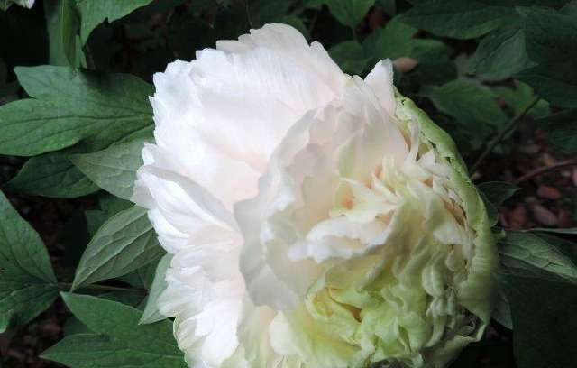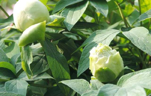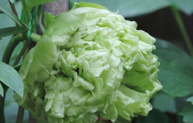 豆绿牡丹出自洛阳,俗称绿牡丹,是牡丹四大名品之一。在牡丹品种中,豆绿是唯一纯正的绿色珍品,花为绣球型,因色如青豆而得名。此花是晚开品种,初开时呈青绿色,盛开时颜色渐淡,阳光下花色变白,清爽雅致,风韵独特,有一种另类脱俗的美。
