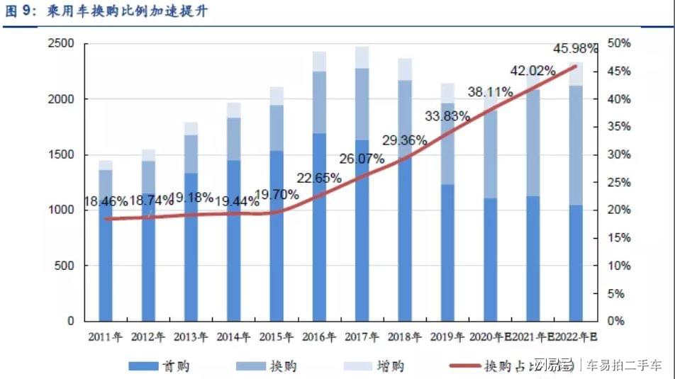 今年年初,安信证券便根据历年二手车车龄分布和过往每年乘用车销量的换购率,测算出2020-2022年乘用车换购比例分别为38.11%、42.02%和45.98%,2022年后换购用户预计将成购车主力。同时,分析师认为换购加速将带动中高端车型放量,豪华车将成为换购趋势的明显受益者。