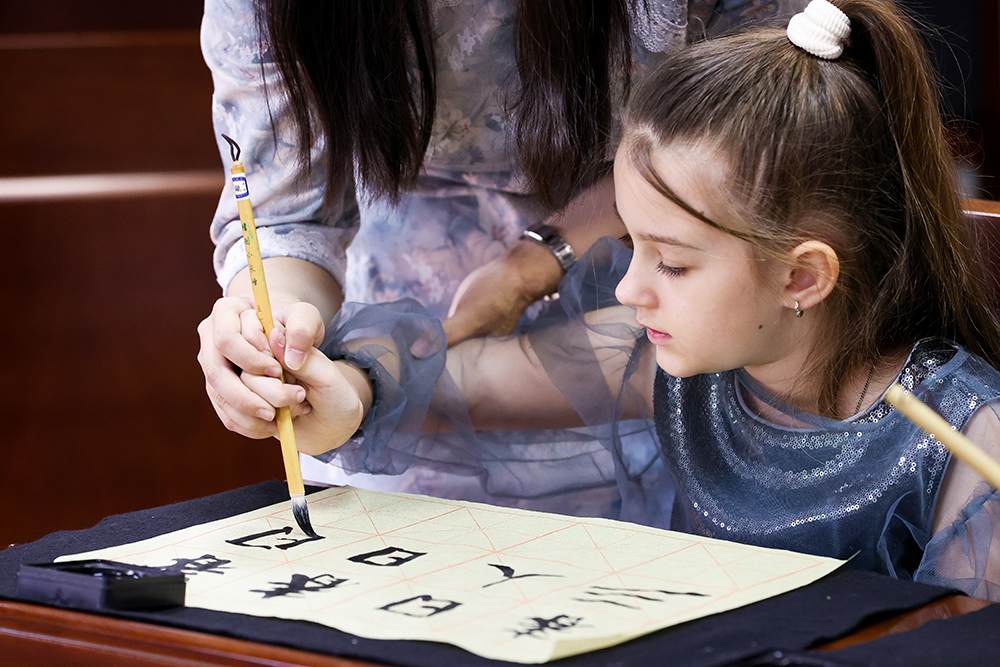 联合国中文日到来,俄罗斯学生手握毛笔学写汉字