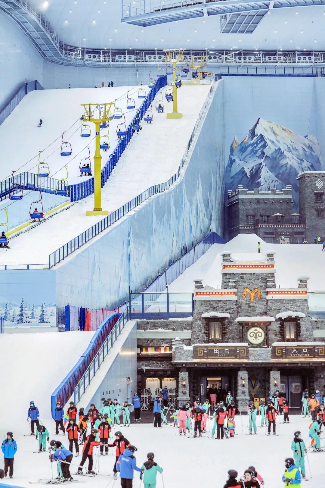 成都融创雪世界,是国内最大的室内滑雪场,总建筑面积约8.08万㎡,有7条不同等级的滑雪道,和2个地形公园,全天可接待8000人滑雪。