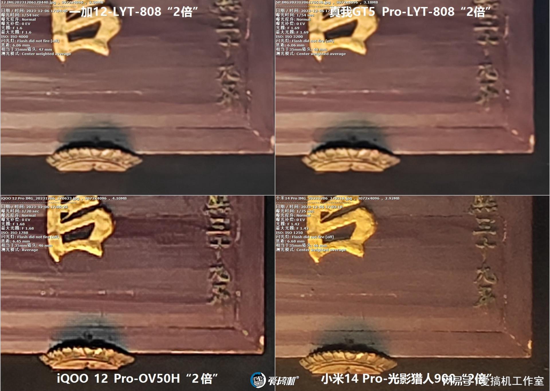 其实不用比也知道,白天是iQOO 12 Pro、一加12的3倍OV64B最强,然后是2.9倍JN1的小米14 Pro(相机界面是裁成3.2倍),2.7倍IMX890会吃倍率的亏(IMX890的2x2 ocl结构也会拖点后腿。相机界面也是裁成3倍)。