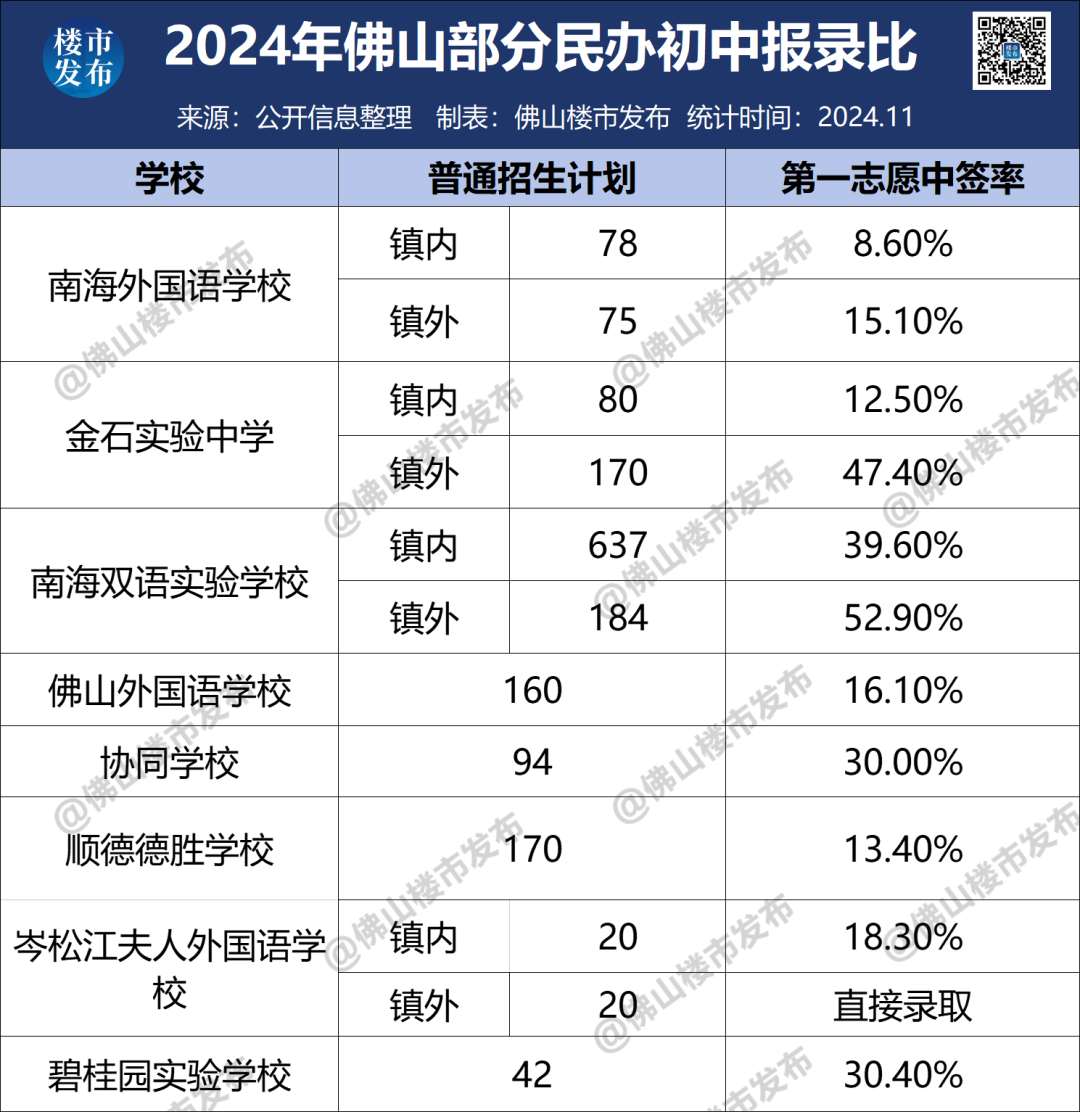 从2024年佛山民办学校中签情况来看,热门学校基本在第一志愿录取阶段就已经招满。