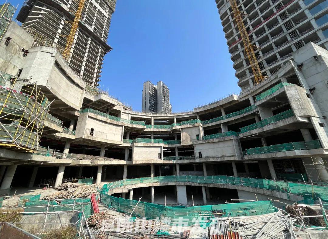 楼市君看到,虽然项目被绿色的防护网围闭着,但商业体轮廓已建造完成,即地上4层+地下2层。