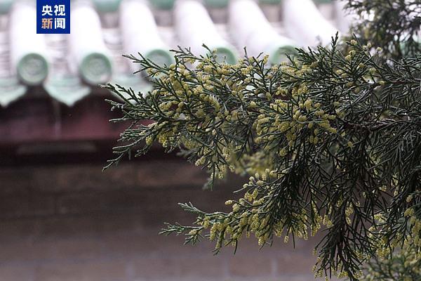 近日,北京天坛公园的圆柏花粉