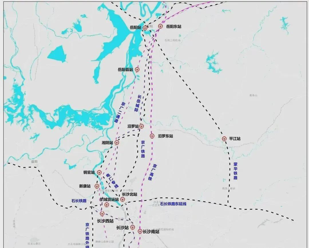 线路走向:从长沙西站出发,向北跨越湘江后,直达湘阴站,再向东北到汨罗站,最后直达岳阳东站。