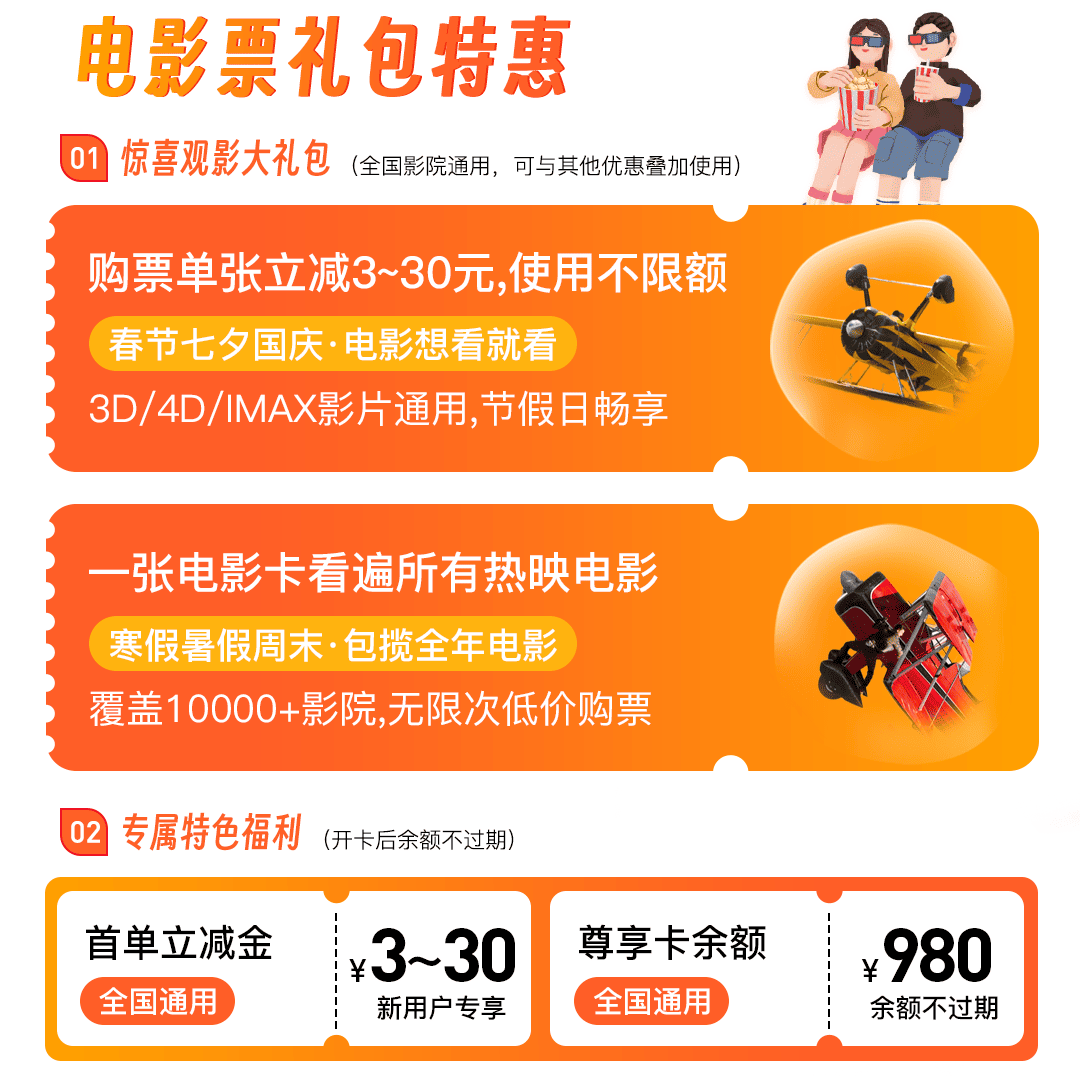 全国影院通用980元电影卡