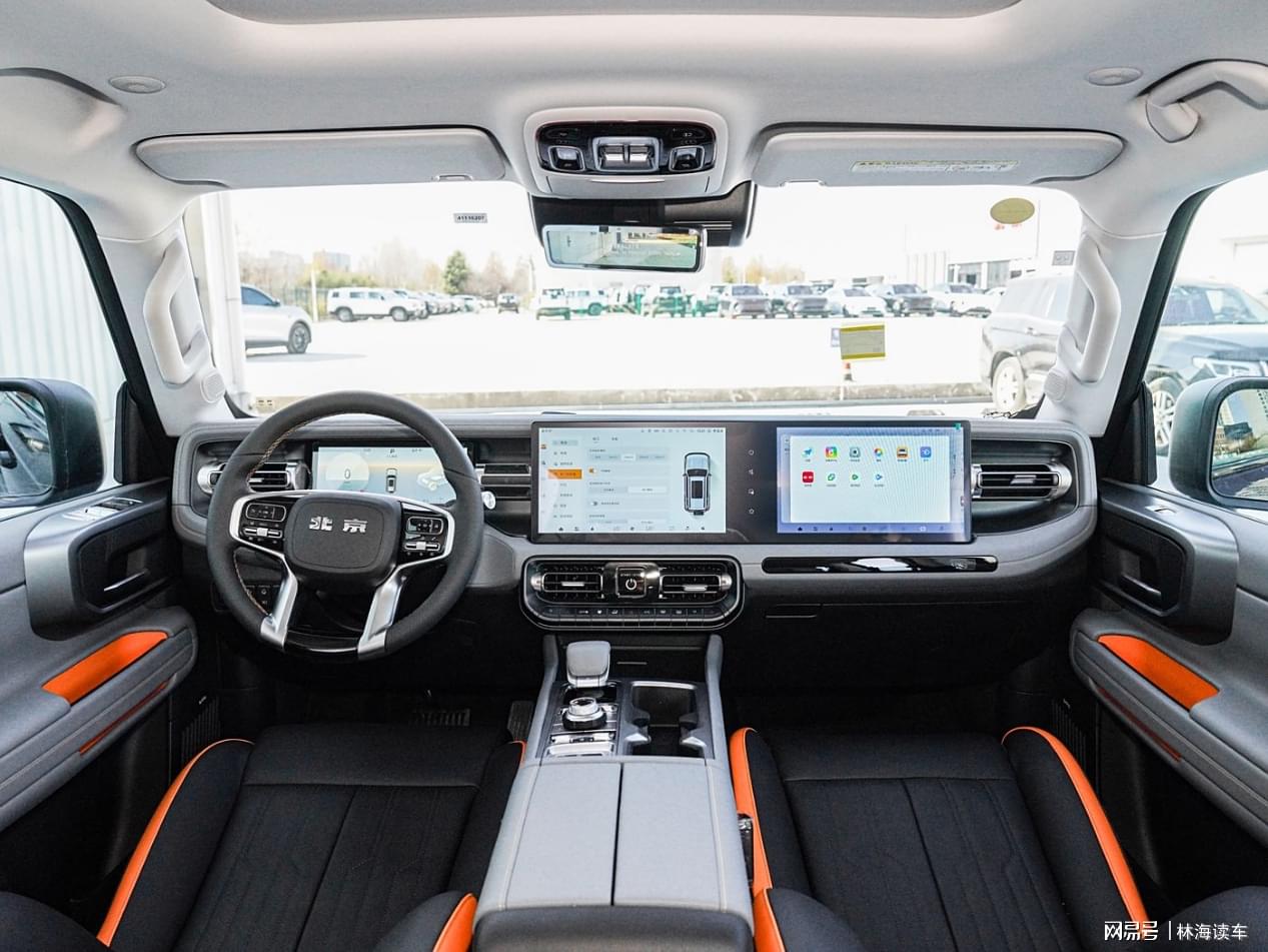 BJ40增程版车内就有意思了,全系提供10.25寸仪表、双12.8寸中控副驾双联屏,内置高通8155芯片,前排座椅配备通风加热和按摩,副驾拥有零重力座椅,并配备Infinity12个扬声器。智能化方面,配备透明地盘和全景影像以及L2辅助驾驶。
