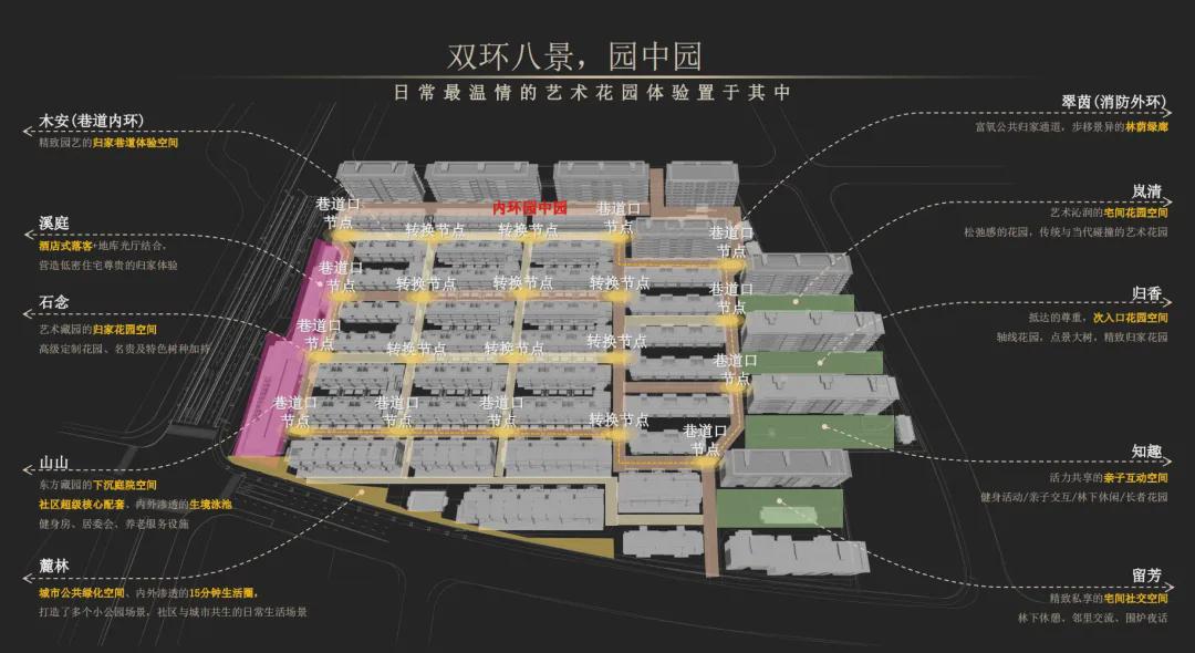 景观园林,以"富林风华,十景多花园"为项目核心理念,通过现代设计语言重构《富林十景》的山水意象,将"山、水、茶、酒、舟、市"等江南文化符号有机融入空间序列,营造"一步一景,移步异景"的沉浸式归家体验。