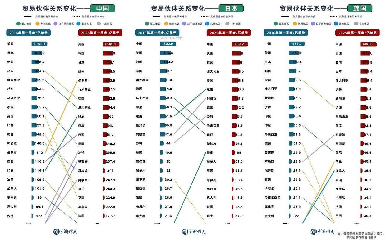 这表明,这些国家的变化基本在它们各自所属的贸易集团内部,体现了其对地缘政治联盟的优先考虑。
