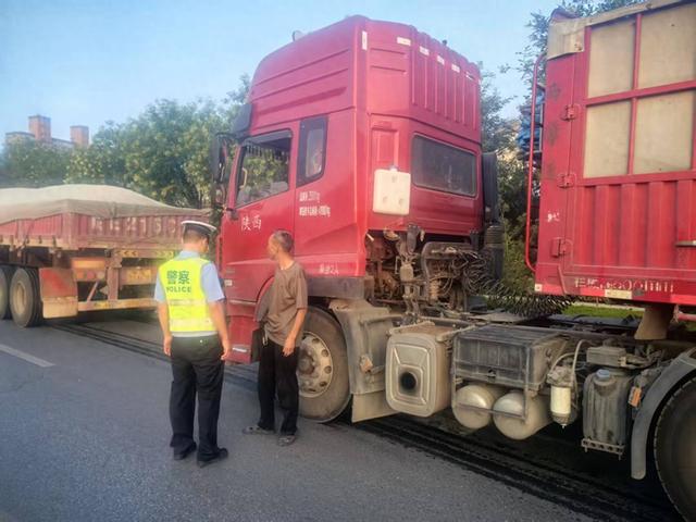 图为:7 月 12 日 ,富平交警大队各中队民辅警在辖区重点路段设立临时检查点,进行路面安全检查的情景。