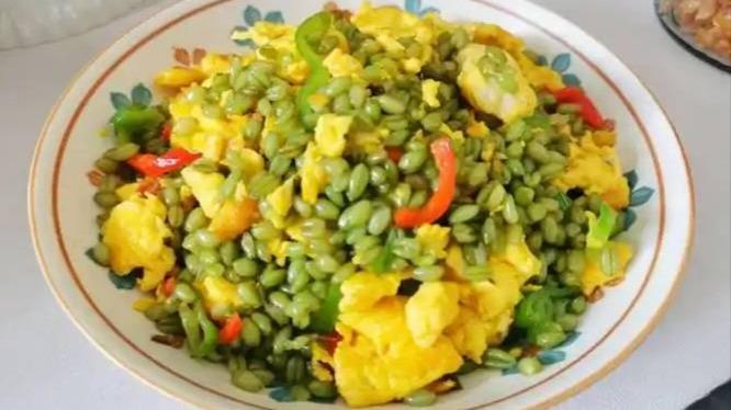 主要食材:青麦仁200克,鹅蛋1个,葱蒜适量、青红椒适量、盐、生抽、食用油
