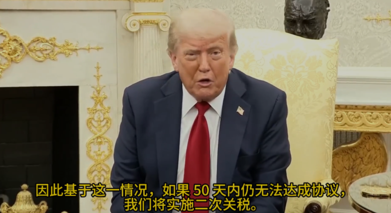 现在虽然已经是周二的凌晨,但在一个小时前是周一,而特朗普口中的“重大声明”也落地了,所谓的重大声明原来是特朗普对俄罗斯征收100%关税。