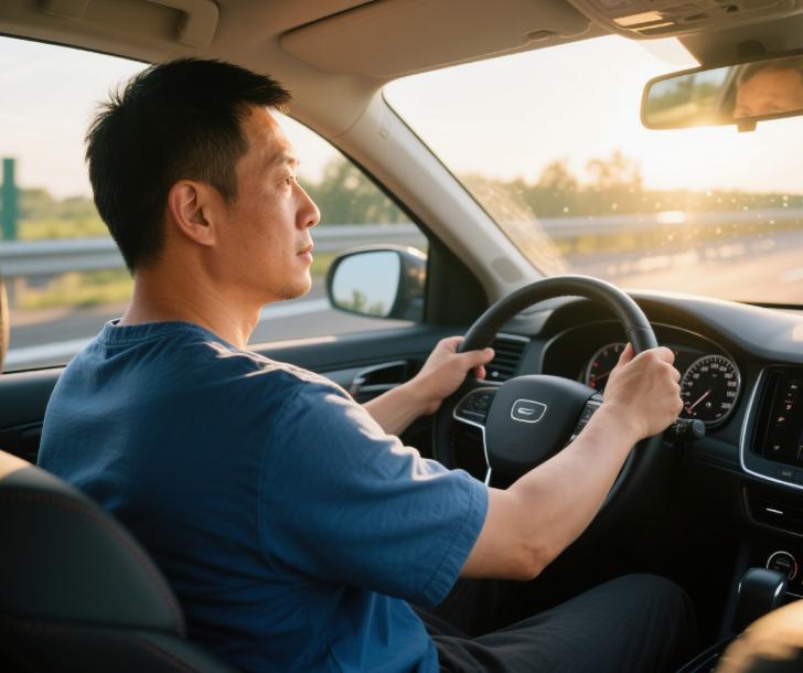 他把巡航定速设在110,不快不慢,稳稳地占据着中间车道。
