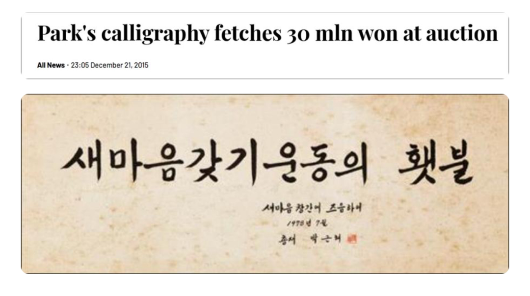 比如韩国,别看他们的总统都没什么好结局,但“总统墨宝”却是拍卖行的当红炸子鸡。几位有造诣的前总统,只需略写几个字,都能拍出几千万韩元的价格。
