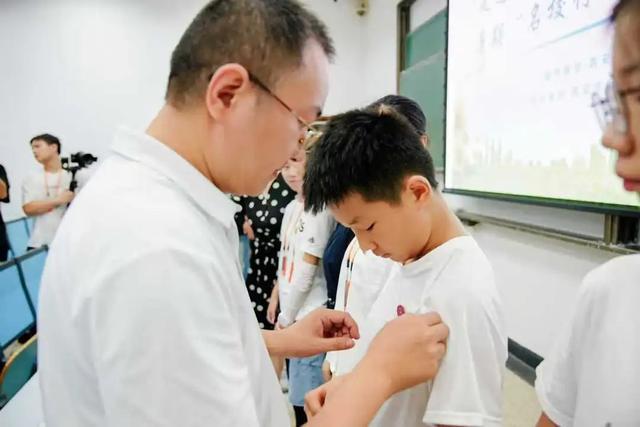 启动仪式上,西安市妇女儿童活动中心主任野晓睿为研学领队及学生代表授旗,宣布系列研学活动正式开启。随后,由教学活动部部长介绍了本次活动目的意义并就2025年暑假关爱活动进行了安排发布,同时与老师们一起为孩子们佩戴了西安交通大学校徽,寄望大家牢记“精勤求学、敦笃励志、果毅力行、忠恕任事”的西安交大校训。
