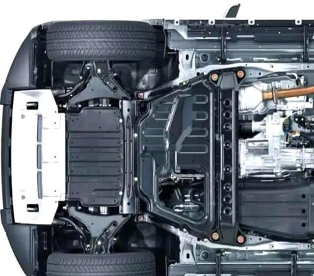 这根钢骨,就是那根高强度梯形钢梁,直接焊接在车身底部,与车身融为一体。