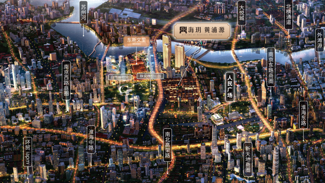 十八里,起笔百年黄浦心,以人广板块为城市源点。向北——苏河滨水之心,世界级水岸与(南北高架)城市中轴交汇。向东——一条北京路,连接外滩源、黄浦源两大风貌区。向西——百年斯文里,超90万方成片广式石库门建筑群。向南——“上海零坐标”国际饭店与《繁花》中的黄河路交汇。历史根脉、家族贵脉、江河血脉、资本商脉,四脉合一。海派之源、风貌连片、通江达河,蕴积脚下的伟大。