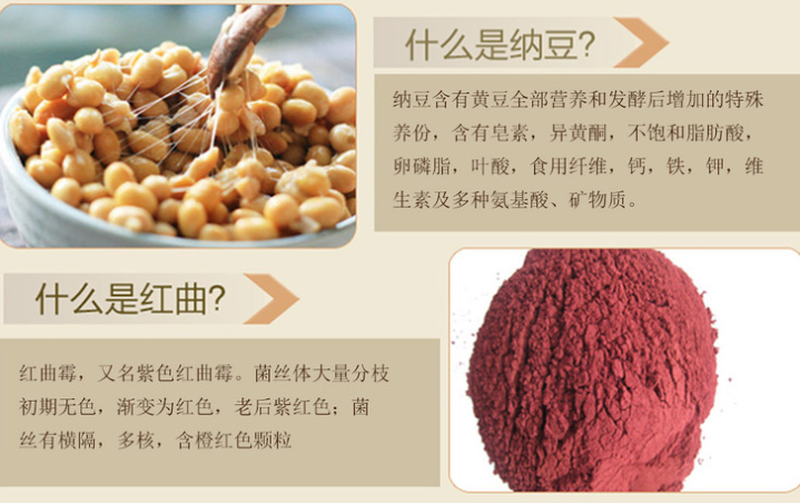 纳豆和红曲霉,分别来自发酵大豆和红曲米,是东亚传统饮食中“养心护血”的经典组合。