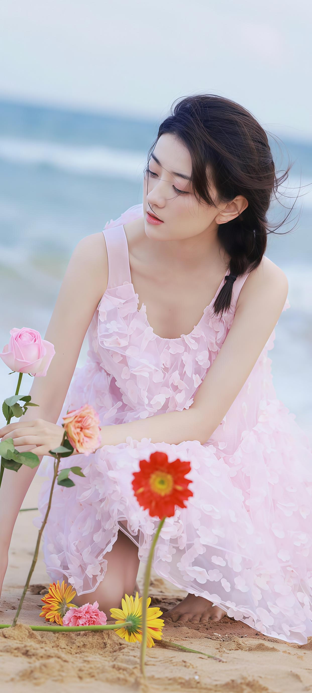 晨光熹微中走来一位水墨丹青绘就的佳人,梁洁的面容恰似工笔细描的仕女图——杏眼流转间漾着西湖春水般的潋滟波光,琼鼻如远山含黛的玲珑剪影,朱唇微启时若三月沾露的灼灼桃瓣。