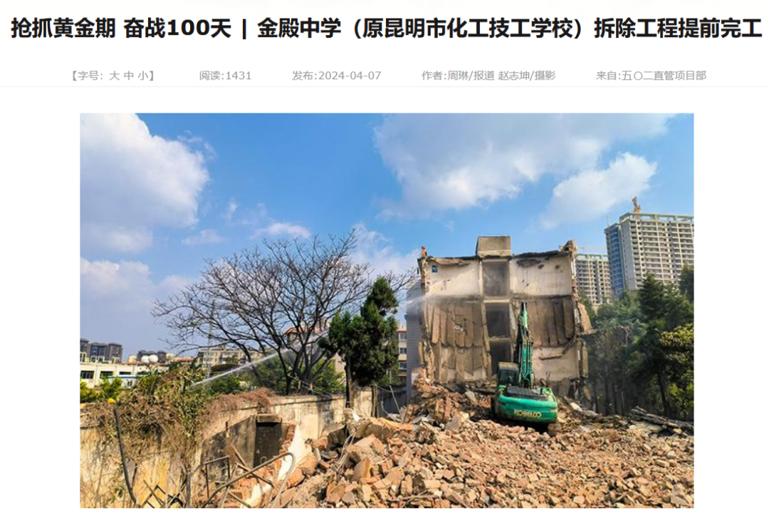 据悉,拆完后将用于金殿中学一校两区建设项目,扩充片区教育资源。