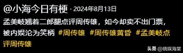 @小海今日有梗·2024年8月13日孟美岐翘着一郎腿点评周传雄,如今却卖不出门票被内娛沦为周传雄#周传雄黄昏#孟美岐点评周传雄