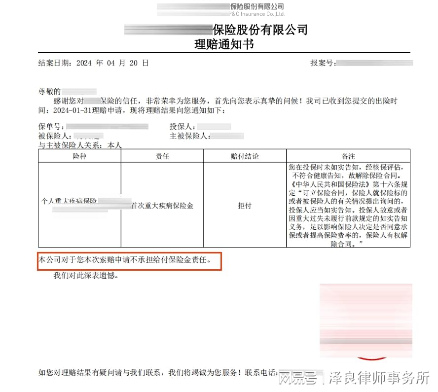 在与保险公司经历了数次沟通却仍然没有取得理想结果后,方女士最终选择联系泽良。泽良律师在接受委托后,经过全面细致的审查,得出明确结论:保险公司的拒赔理由根本无法在法律上站稳脚跟,其所谓的依据存在诸多经不起推敲的地方。