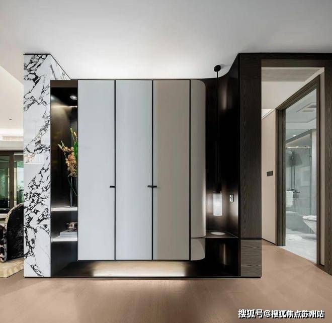内部不仅做好了玄关柜,柜体表面还采用了豪车级皮革饰面,搭配定制金属拉手,手感和颜值很高。同时皮革材质易于清洁打理,使用耐久度也更好。