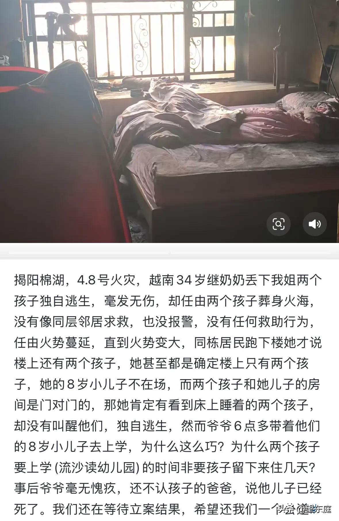 更让人心疼的是,起火的时候,孩子的继奶奶最先发现,然而她却见死不救选择了自己独自逃生。