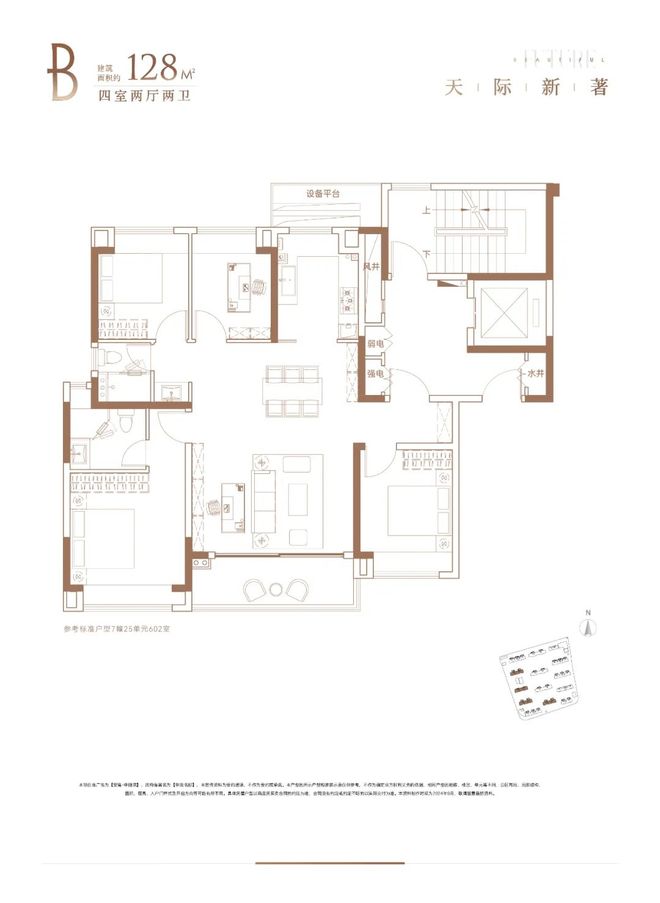 2)建面约128㎡四室两厅两卫