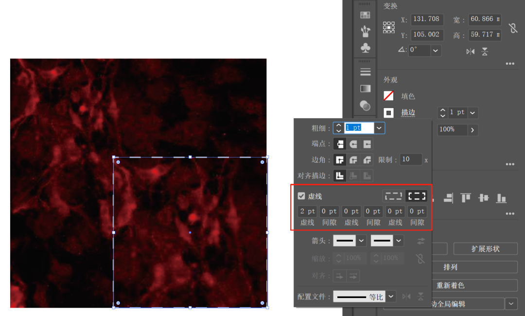 2. 矩形工具框选放大区域,粗细参数可根据实际情况进行调整,下图为 1pt。