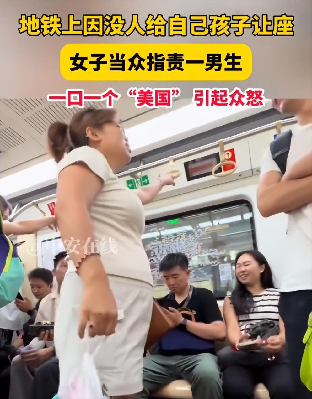 她指责小伙都没有想给小孩让座,而如果是她,她就会站起来让座。