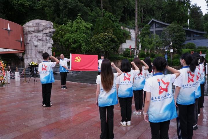 首都师范大学“遵义薪火·苗寨传声”专项活动骨干志愿者暑期实践队在遵义红军烈士陵园重温入党誓词。