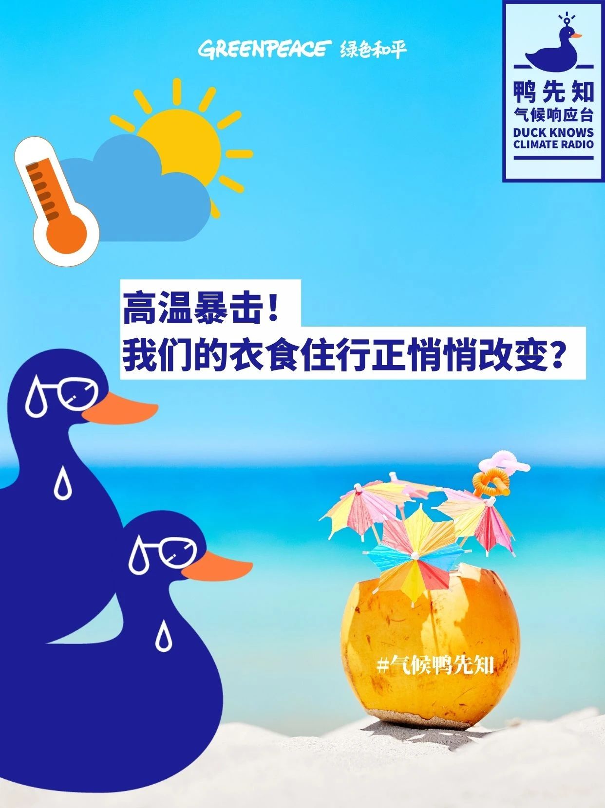 #鸭先知响应台 是绿色和平的气候栏目,你可以在此浏览气候变化领域的最新热点,并了解先锋行动案例。关注我们,一起解锁新的气候行动灵感!春江水暖鸭先知,气候变化我先知。