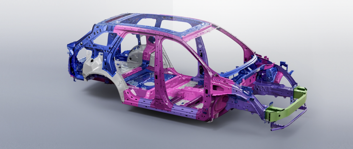 前防撞梁两侧配备4个铝合金吸能盒,结合内侧与主纵梁连接的三角结构,确保碰撞力传递路径清晰高效。更罕见的是,外侧与上方“Shotgun”车身上纵梁相连,显著提升了偏置碰撞时的安全性,这在十多万价位车型中实属少见。