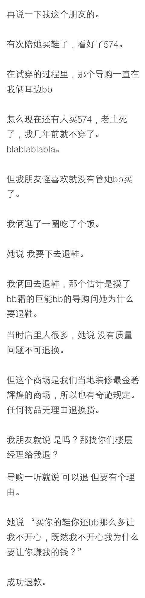 我本人不化妆,想送朋友一个口红,就去Dior,第一家那位弟弟我真是服了,非让我买他推荐的色号,不买就给我大白眼。后来我想别花钱买不开心,哪都有Dior,就换了一家,是个说话有点儿紧张,但是很热情的老大哥,一高兴买了两个,送陪我来的闺蜜一个。关于574的故事,我记着当时好像是买两双有折扣,但是我们就买一双。小姐姐非常友好,你能便宜,我能卖货,谁来你俩凑一单。大部分都很好,个别高冷吧,化妆品专柜居多