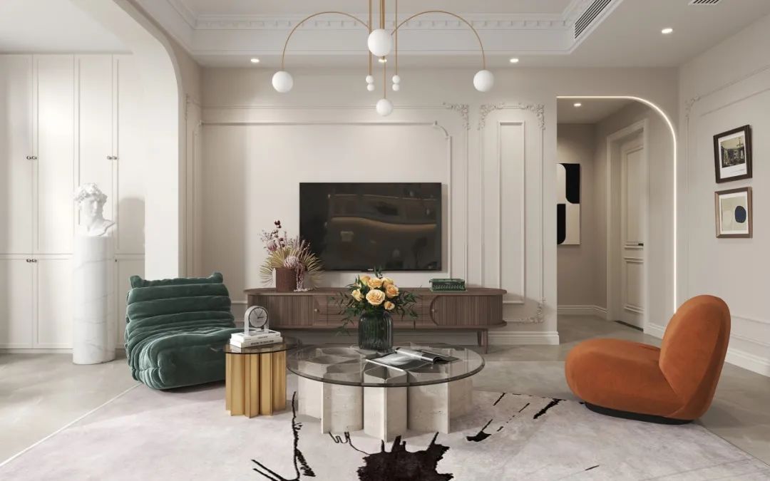 ②低奢材料小面积使用即可,使用太多则会造成视觉审美疲劳,失去家的温馨氛围感。