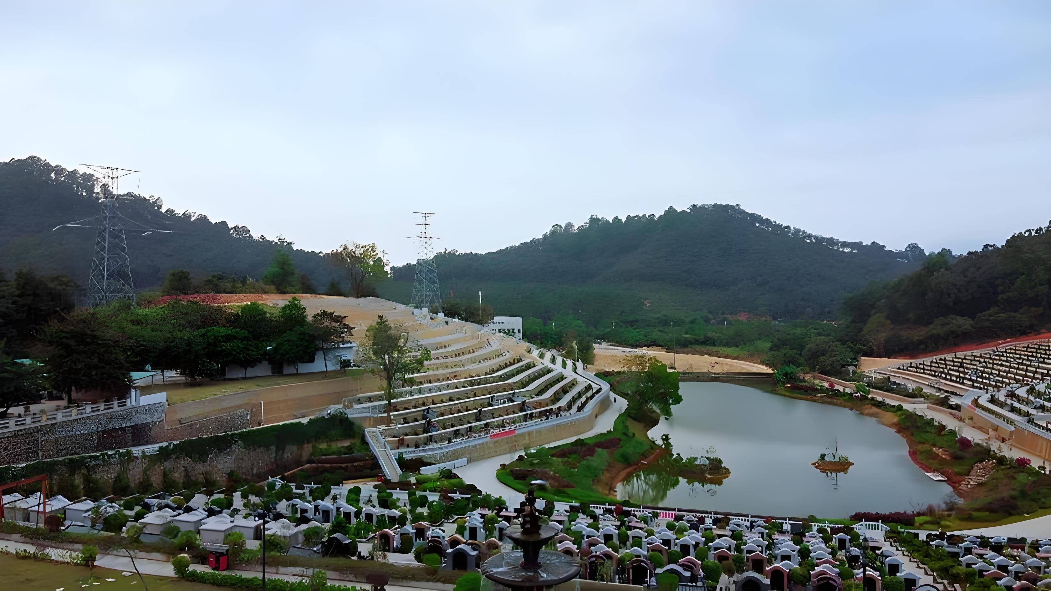 文化元素:融入岭南骑楼、客家围屋等建筑风格,设有艺术墓碑区,以山水为背景诠释生命哲学。