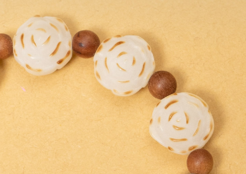 精选天然菩提根果实,质地坚实温润,经过盘玩会呈现更迷人的光泽。每一颗都精心雕琢成山茶花造型,花瓣层叠,优雅又精致。