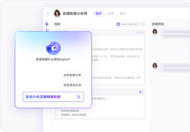 在开发阶段,降低智能体的开发门槛,让智能体快速理解角色与任务逻辑,像一个训练有素的新人“快速上岗”,解决“能不能用”的问题。