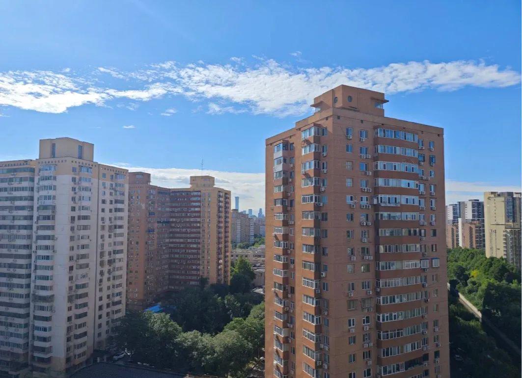 这是一套位于 16 层的房子,所在楼栋共 22 层,这个楼层属于比较高的。相比上一个房子,这个房子窗外的北京国贸 CBD 景色略为逊色,优点是室内没那么热了,但朝南的方向依旧炎热。这间屋子的使用面积更大,大概是 14 至 15 平方米。不过,房间没有阳台,也没有晾衣架,只能自己买个支架或晾衣杆来解决晾晒问题;没有阳台也无法存放物品,加上我的杠铃架也放在卧室里,整个 15 平方米的屋子显得非常拥挤。