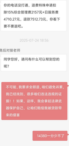 邓女士指出"包过"承诺属违规,课程质量与宣传严重不符,要求退还本科阶段半数学费6720元,同时保留专科课程学习权限。