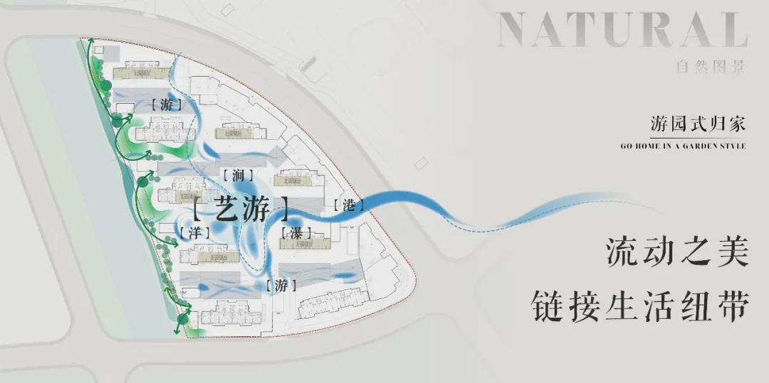 整个社区被水系环绕,繁星式楼栋布局,充满仪式感的景观与浓绿自然的植被,无论是精心设计的景观小品,还是那郁郁葱葱的树木花草,都让你在繁忙的生活中找到一份心灵的慰藉与安宁。