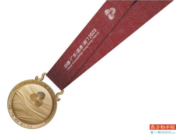 奖牌名为“同心暖”,绶带设计为三花映牡丹,挂钩用岭南特色“镬耳屋”造型