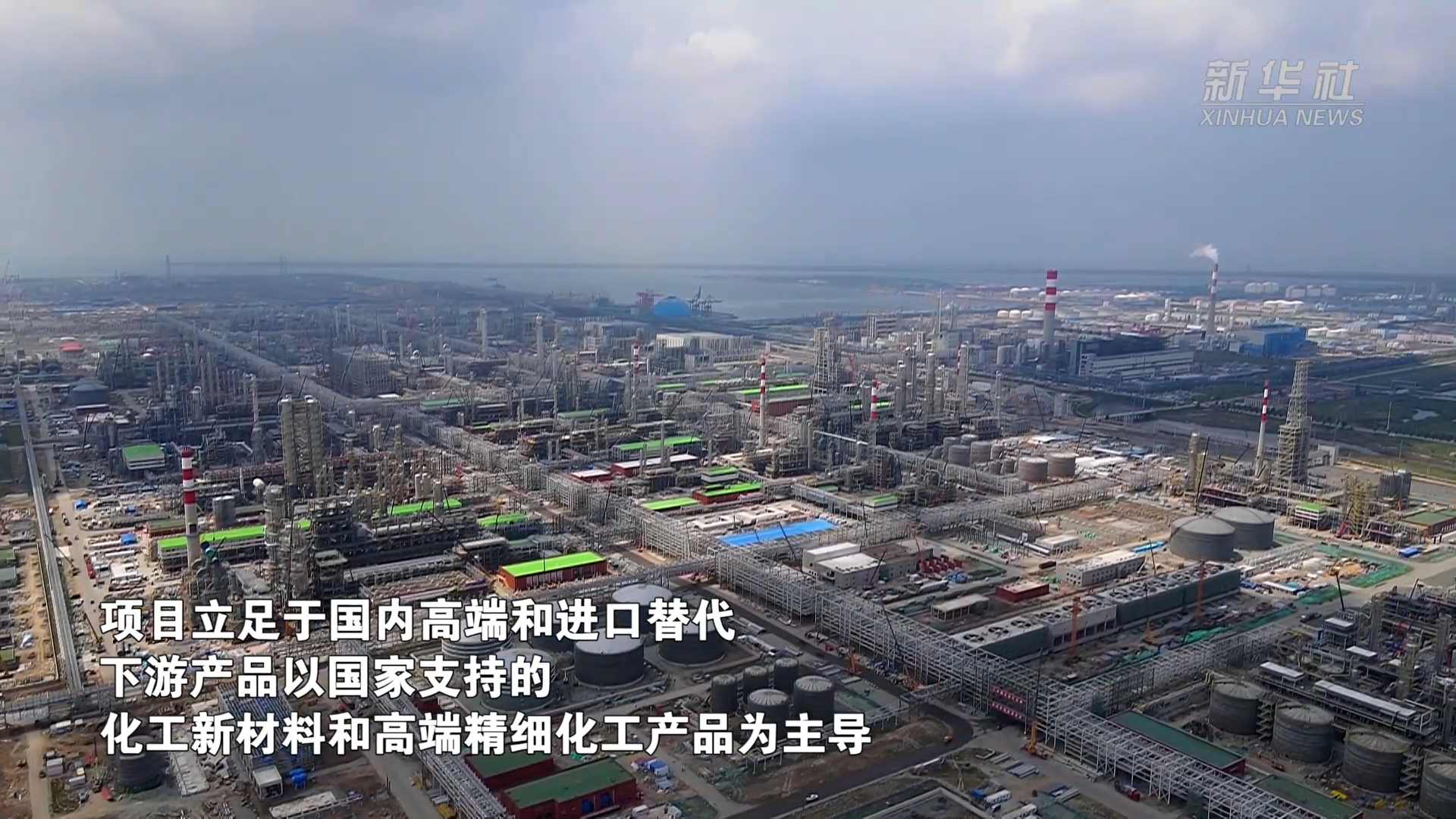 自开工之日起,项目稳步推进。2023年9月,完成所有地下工程施工;2024年12月,165万吨/年乙烯装置两台大型设备丙烯精馏塔、乙烯精馏塔吊装成功;2025年2月,项目中最大的单体设备——芳烃联合装置抽余液塔吊装成功。