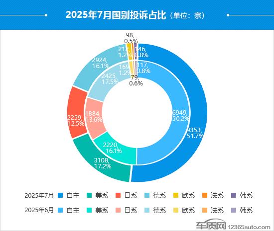 据国内领先的缺陷汽车产品信息收集平台车质网统计,2025年7月车质网共受理车主有效投诉信息18,129宗(其中含第三方平台和后装轮胎投诉共29宗),环比上涨30.7%,同比上涨40.5%。今年1-7月累计投诉量已超13万宗,与去年同期相比上涨31.1%。