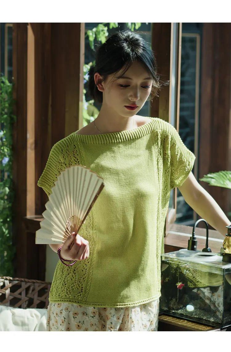 编织机材料包49梧桐 一字领镂空短袖