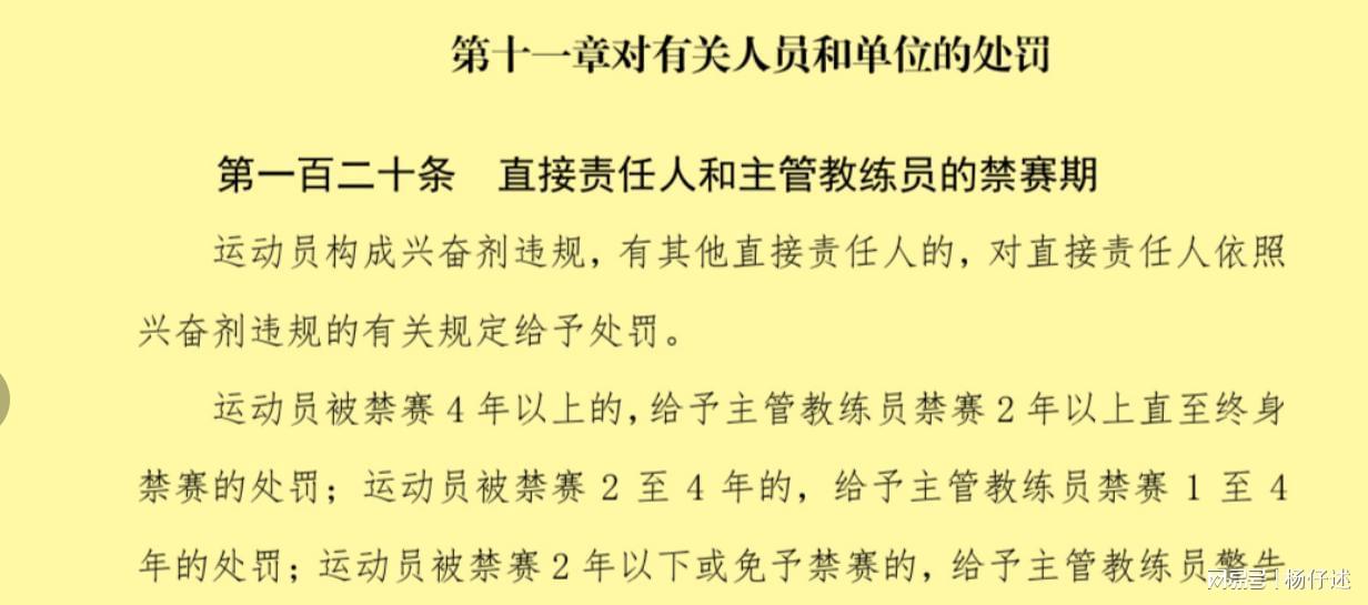 其实体育总局所颁布的反兴奋剂规则,早在2021年1月1日就正式施行了。其中《反兴奋剂规则》第十一章对有关人员和单位的处罚规定如下: