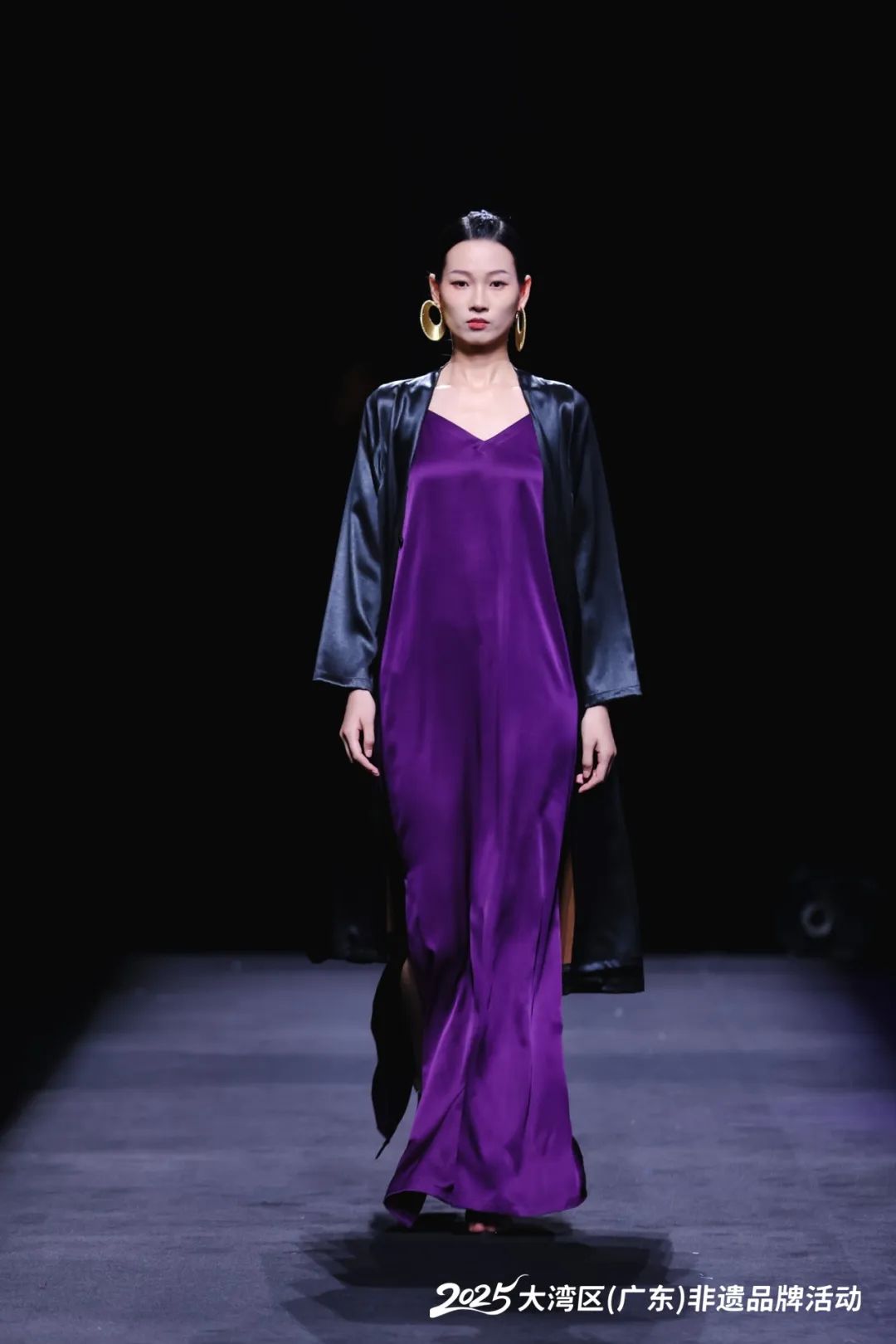 非遗,是流淌于血脉的薪火。它以技艺为舟,载着祖先的智慧、时代的印记与未来的期许在代代相传中,书写着永不褪色的永恒魅力。本次大秀以“传承”为轴线,串联“祖辈的坚守·父辈的突破·新生代的超越”三幕篇章,通过讲述三代非遗传承人的技艺传承故事,展现从坚守本真到跨界创新,最终实现时尚进化的脉络,生动诠释非遗在时光长河中生生不息的传承活力。活动中,古琴艺术(岭南派)、广府婚礼习俗、粤剧、皮影戏(陆丰皮影戏)、狮舞(广东醒狮)、过山瑶民间传统舞蹈等非遗项目与现代秀场有机融合,客家山歌与AI电子混音联袂登台,为观众呈现了一场内涵深厚、体验新颖的沉浸式非遗魅力盛宴。