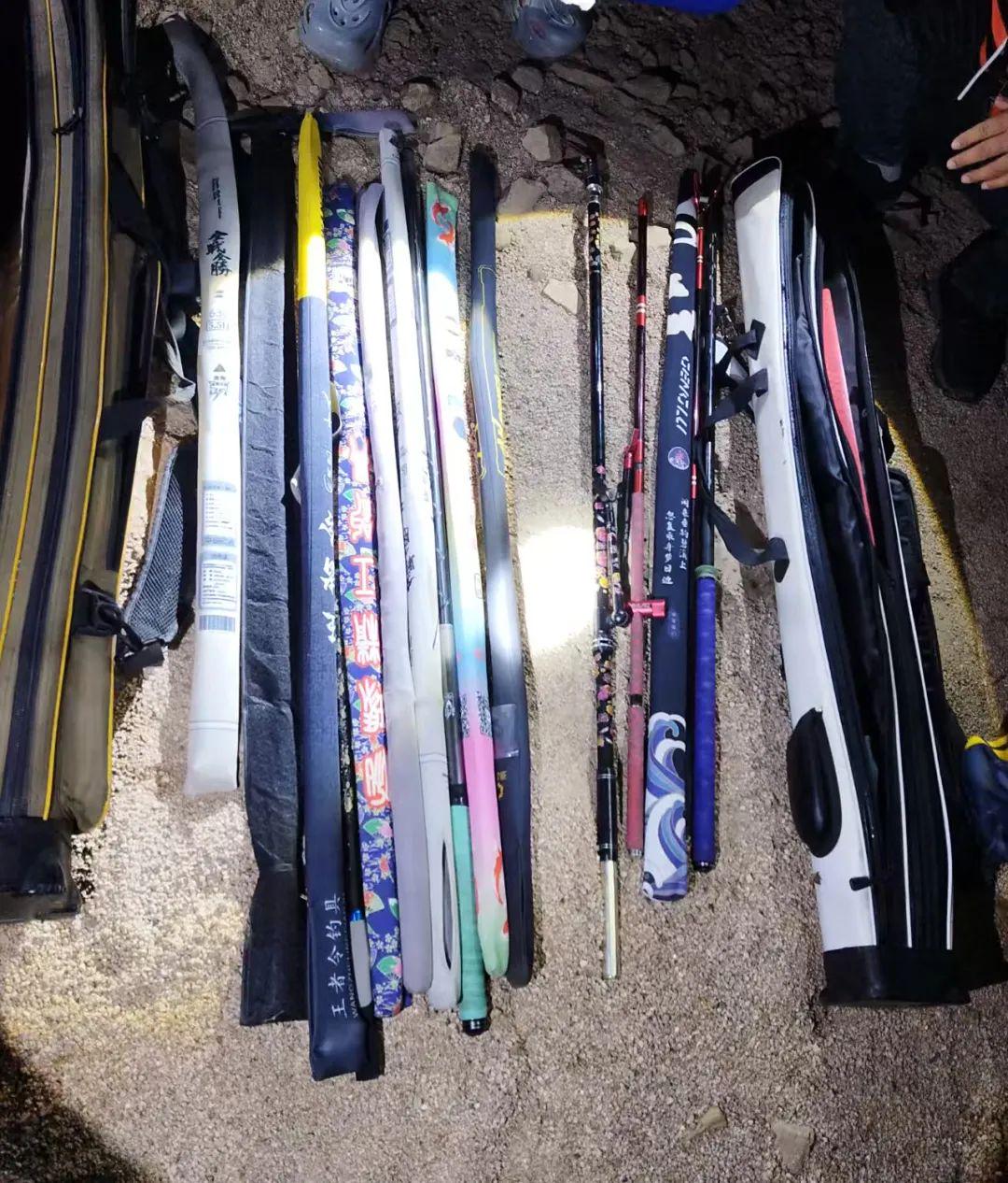 渔业部现场清点,依法处置非法钓具6套、钓箱2个、鱼竿20余件